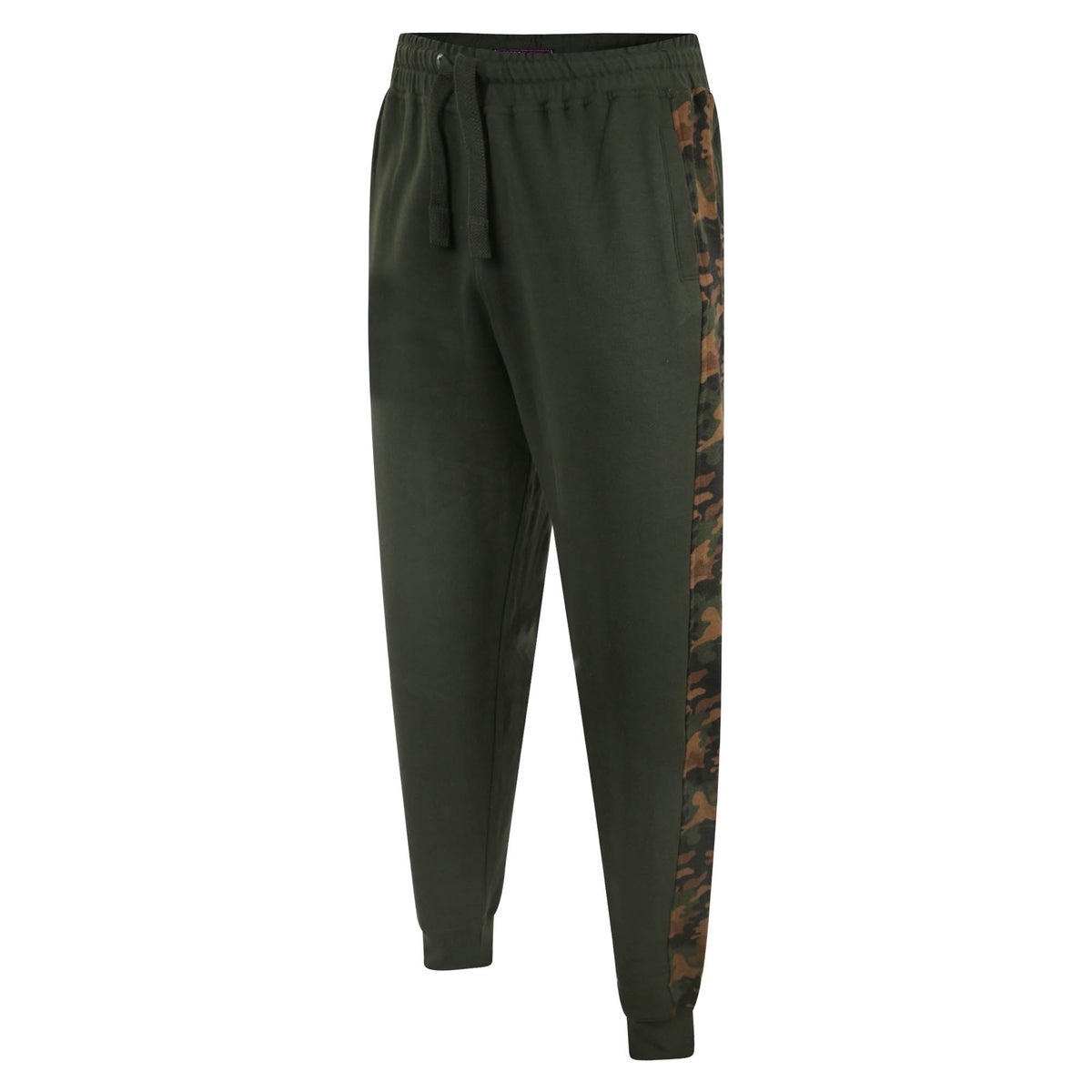 Jog bottoms with a camo stripe on the side. Elastic waist with drawstring. Elasticated legs.