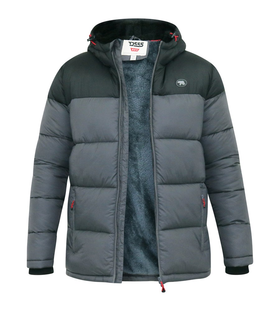 The WORRALL - D555 Quilted Hooded Puffer Jacket is a robust outerwear choice for those cold days. It features a full sherpa lining for exceptional warmth and a quilted nylon exterior in a classic charcoal color for style and substance. This jacket is designed to keep you cozy and comfortable even in the chilliest conditions.