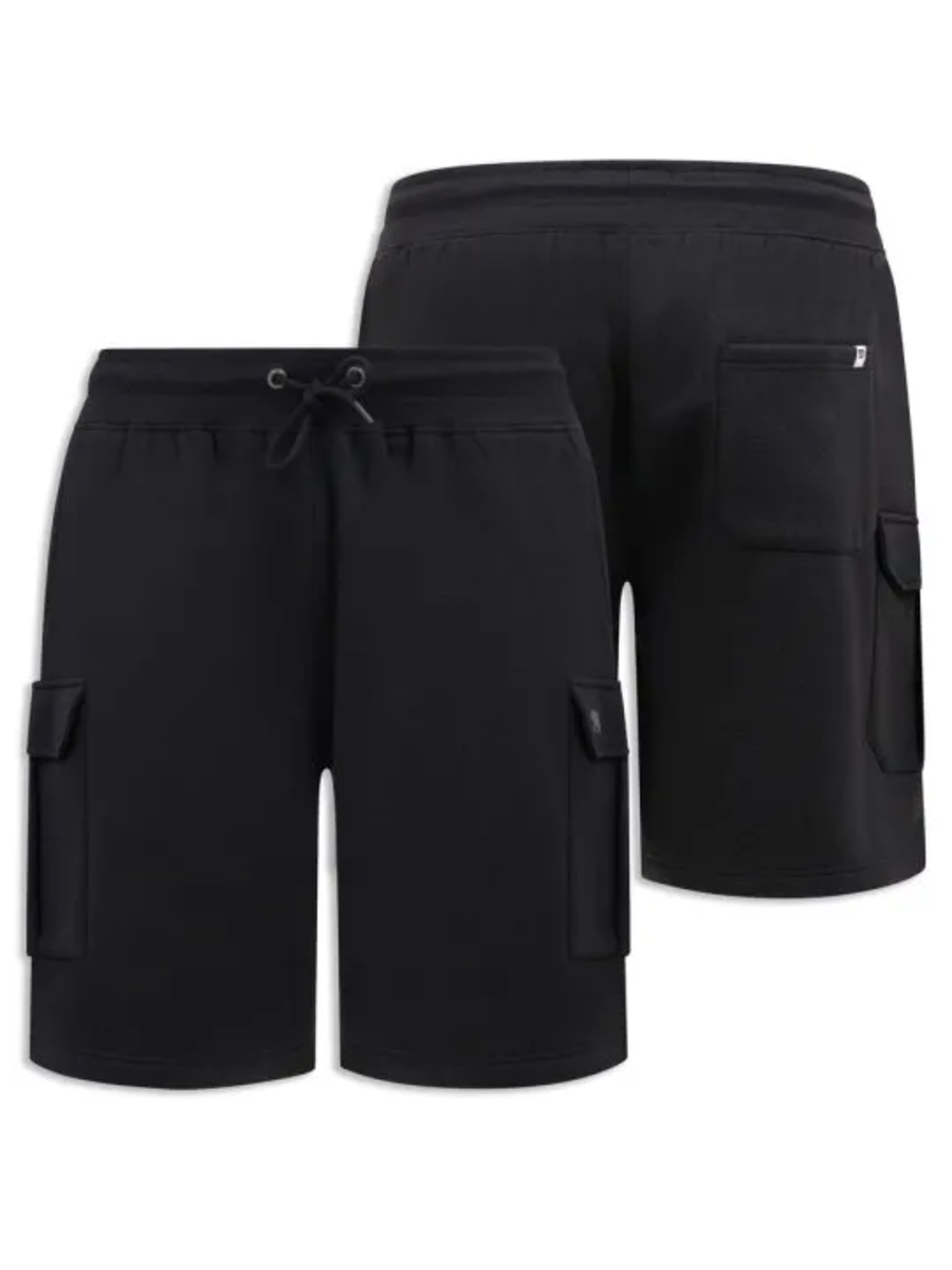 WIGAN 2-D555 Black Elasticated Waist Fleece Cargo Shorts with Bear Embroidery: Bold Comfort, Rugged Style