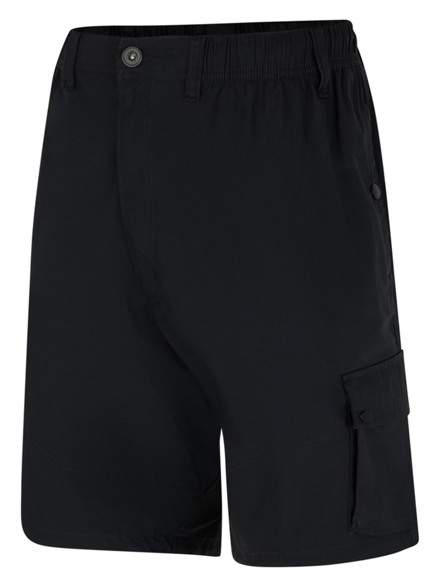 Mens Stretch Cargo Short With Full Elasticated Waistband Zipped Fly Front, 9 Belt Loops And Inner Draw-Cord. 2 Laid On Cargo Style Pockets With Pocket Flap And Back Welt Style Pockets .