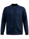 The D555 GILLINGHAM Knitted Zip Through Cable Sweater in Navy Marl combines timeless cable knit design with a practical zip-through feature. This sweater also includes a bonded check lining, providing warmth and style all in one. Its versatile design allows for easy layering, making it ideal for both casual and semi-formal outfits during the colder seasons.