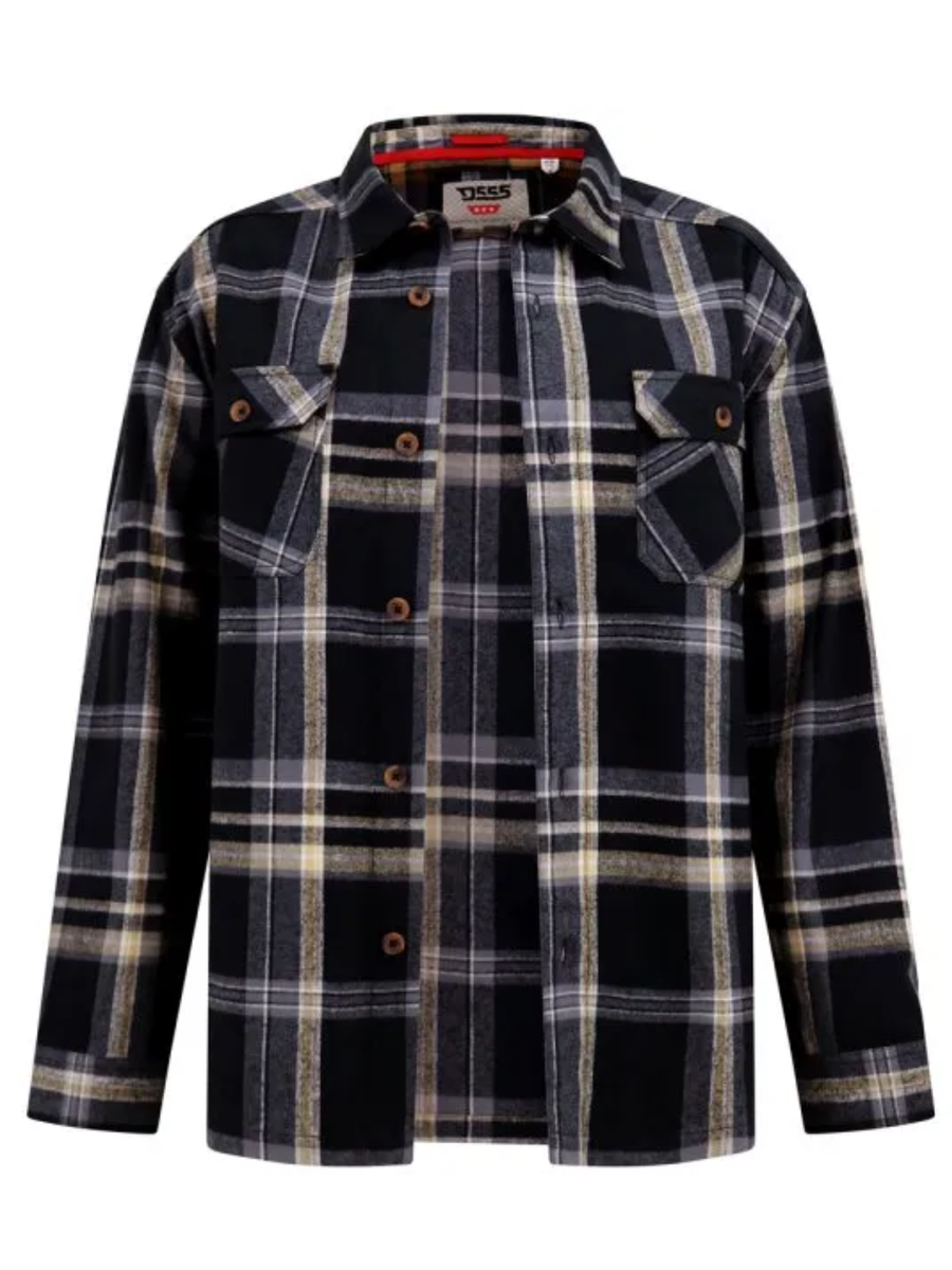 The D555 FALKIRK Long Sleeve Black & Grey Heavy Shacket Overshirt is the perfect hybrid between a shirt and a jacket, providing both warmth and effortless style. Featuring a bold black and grey check pattern, this heavyweight shacket is designed for versatility—ideal for layering over t-shirts, knitwear, or hoodies during cooler seasons. Made from 100% pure cotton, it ensures breathability, softness, and long-lasting durability, making it a staple piece for any casual or outdoor wardrobe.
