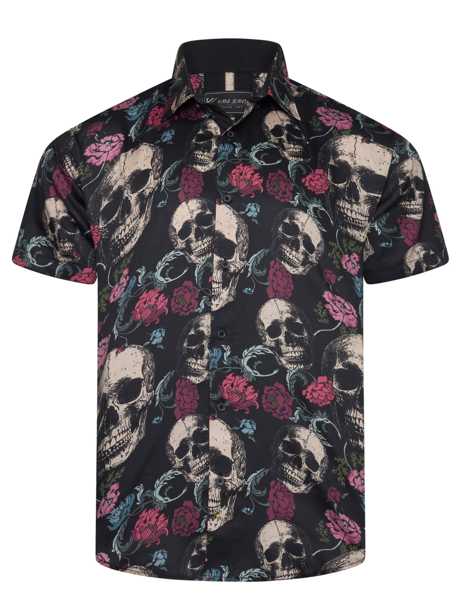 Make a bold statement with this Men’s Floral Skull Print Shirt, where edgy skull artwork meets vibrant floral detail. The striking design adds instant attitude, perfect for nights out, festivals, or standout everyday style. Made from lightweight, breathable fabric with a sharp, tailored fit, it delivers all-day comfort without compromising on impact. Pair it with dark denim or layer it under a jacket for an effortlessly confident look.